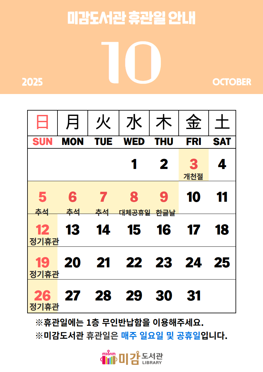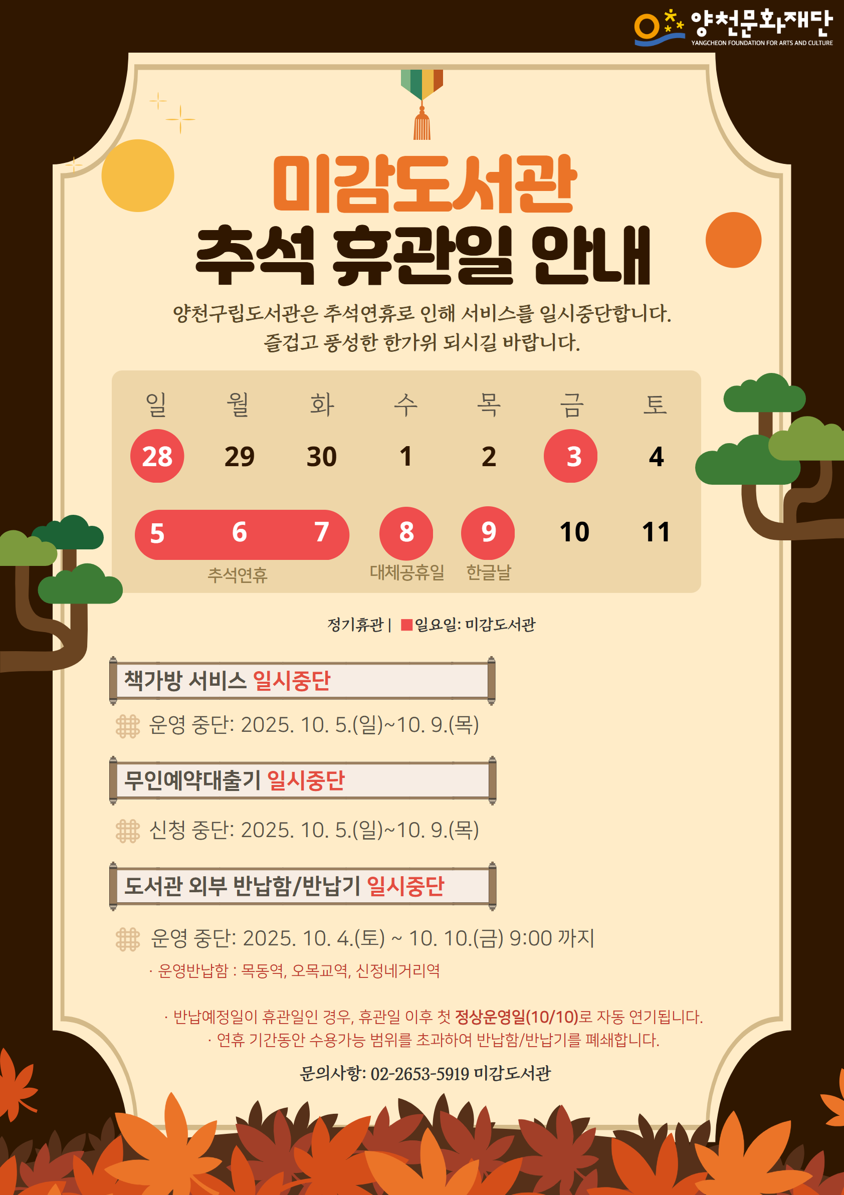 [미감] 10월 휴관일 및 추석연휴기간 운영안내